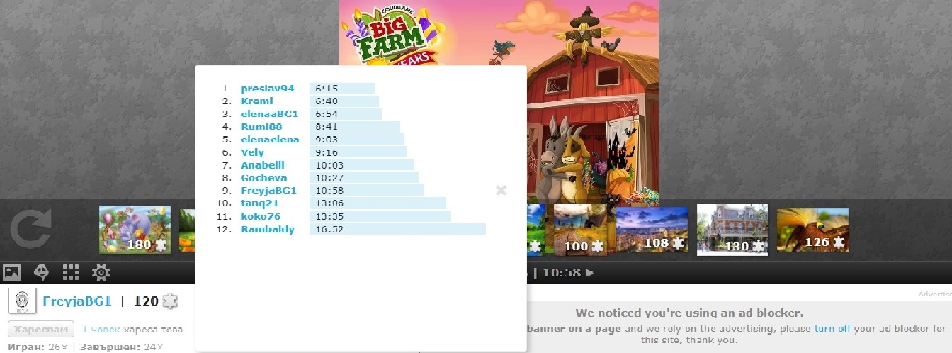 Тук, в темата, моля да вписвате времето, за което сте наредили пъзела. Ако подобрите времето си, можете да редактирате поста си.
