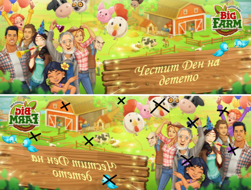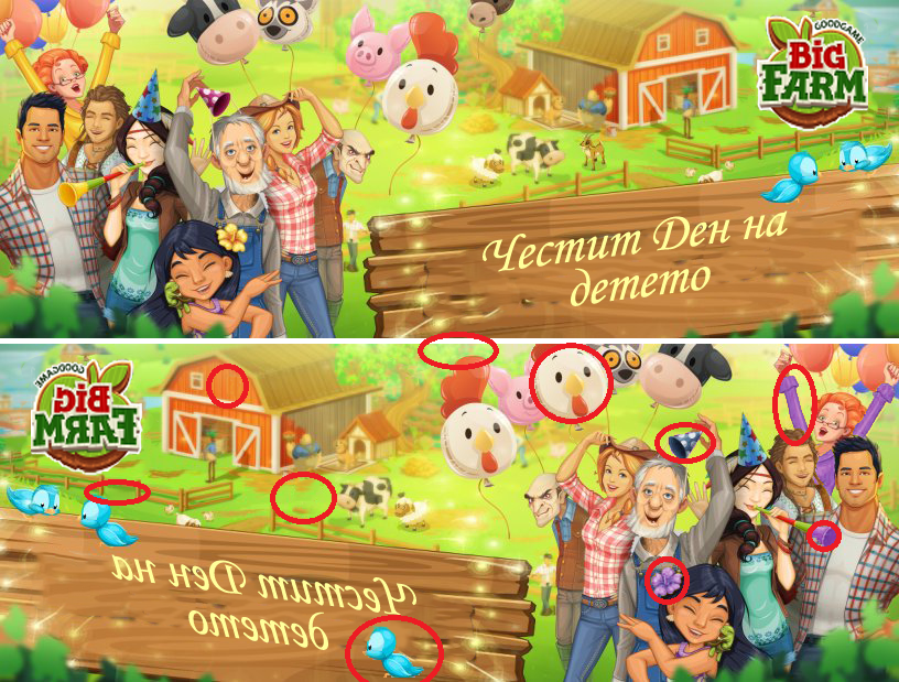 Днес се чества Международният ден на детето! И тъй като във всеки от нас се крие по едно дете, нека то да излезе днес и да се забавлява! Бих искала да Ви поздравя по този повод, като Ви предоставя възможността да се включите в този малък, но забавен конкурс. Разгледайте огледалните картинки, за да видите, дали ще откриете всичките разлики.