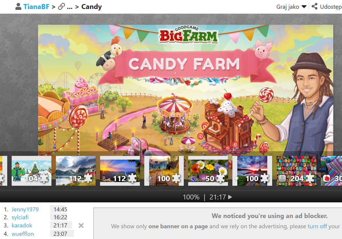 Напомням, че трябва да отбележите резултата си тук или да ми изпратите съобщение с името на играча, който не може да влезе във форума и ника му в Jigsaw planet.
