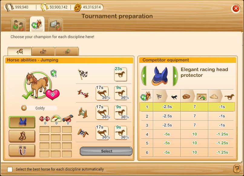 Stávající hodnoty koní, jako jsou úroveň, vlastnosti a chovné efekty, získají nové významy, které budou mít dopad na výzvy v Koňském turnaji. Například u koní s vyšší úrovní je pravděpodobné, že budou mít v závodě náskok ve srovnání s koňmi nižší úrovně. Pokud má váš kůň vyšší úroveň, máte lepší šanci vyhrát proti svým konkurentům!