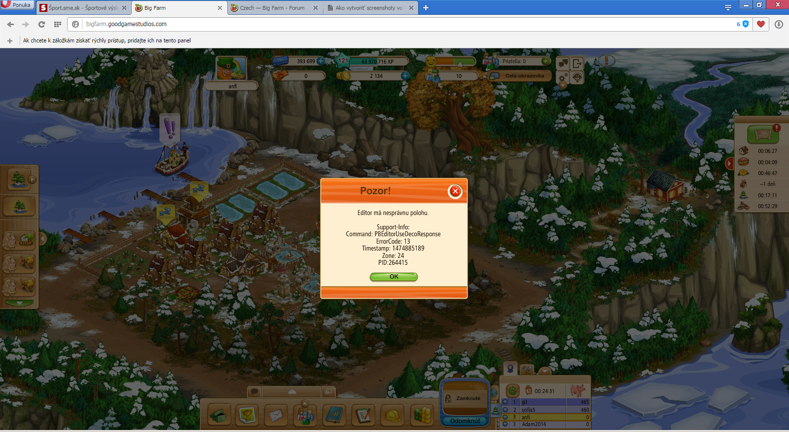 Ahoj, První chyba není zavřením hlášky vyřešena - krmivo nejde ve mlýně produkovat.