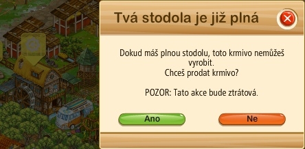 Přestože mlýn zahájil mletí, bez hlášek na prodej krmiva, po domletí nejde sklidt vyhazuje hlášku na prodej krmiva. (takže mlýn je zablokovaný dokud bud neskrmím krmivo nebo ho neprodám)
