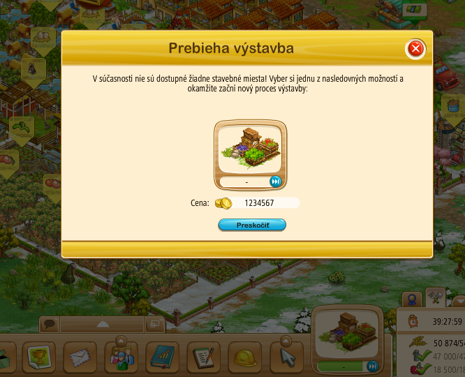 Staval som ozdobné predmety a hneď ich aj rozoberal a po chvíli sa to zaseklo. V okienku stavania (všade okrem hlavnej farmy) ukazuje, že sa stavia ozdobný predmet, ale nie je tam čas do ukončenia.