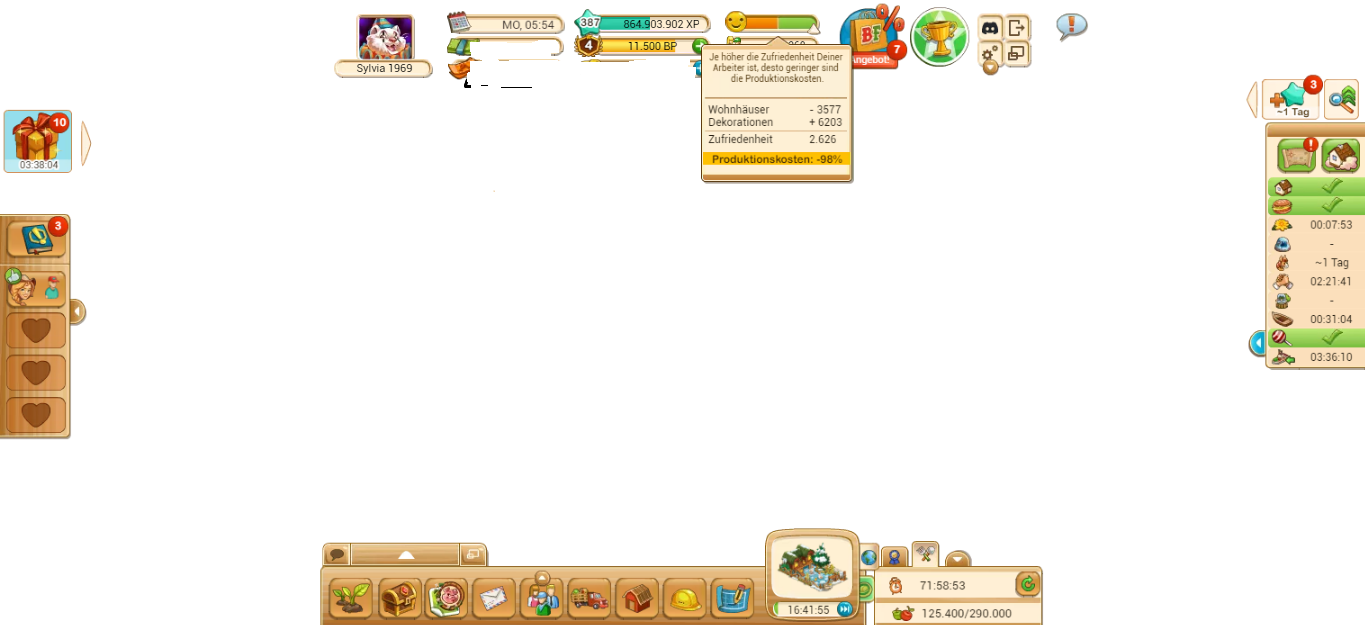 ok, also war meine Beobachtung von Anfang des Spiels, dass man besser Deko auf der BF aufbaut, durchaus richtig, bei den anderen Farmen kann man sie tatsächlich sparen, denn man macht trotzdem noch ein Plus