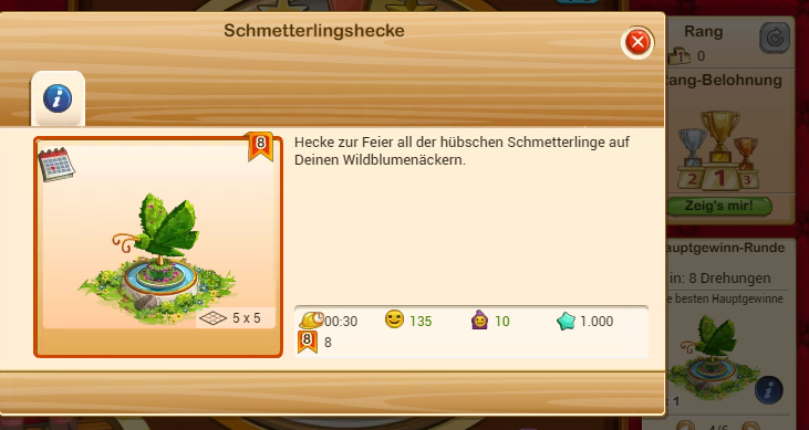 aber es wird mir angezeigt, dass es bei den Hauptgewinnen nur die Schmetterlingshecke als Deko gibt