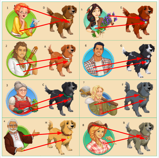 Ich hab solange herumprobiert, bis nix mehr passte. Naja, fast nix - 4 von 8 verkehrt ... Bis auf Matilda hab ich vorwiegend Rot- und Brauntöne versemmelt.