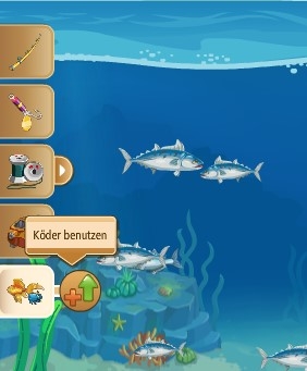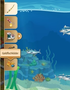 Den Goldfischköder auf der linken Seite bitte auswählen und rechts hinzufügen. Wenn Du dies erledigt hast (evtl. bitte die anderen Köder vorher entfernen) klicke bitte auf "Fischen gehen".