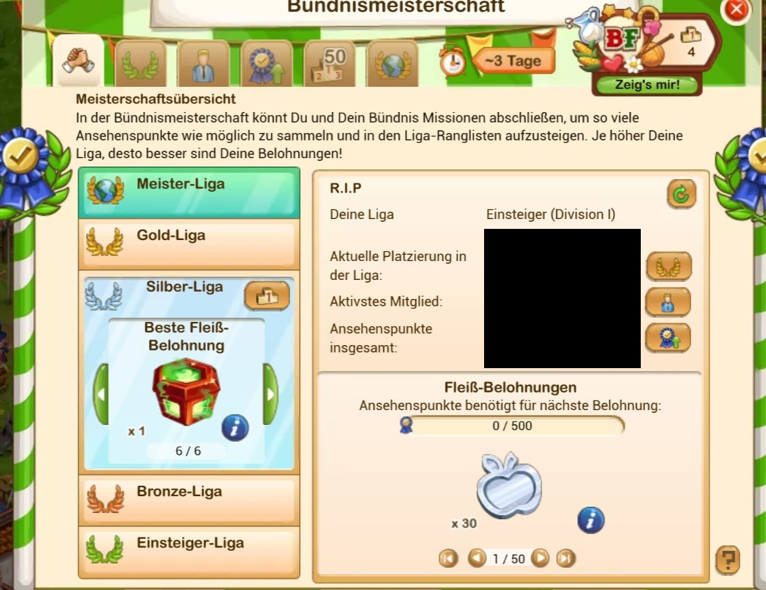ich war mal Neugierig und habe auch die Belohnungen der Silberliga durchgeklickt