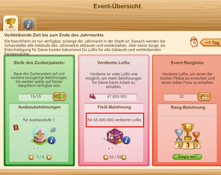 ich bin nur bei ca. 48 Mio von 65 Mio Lollis