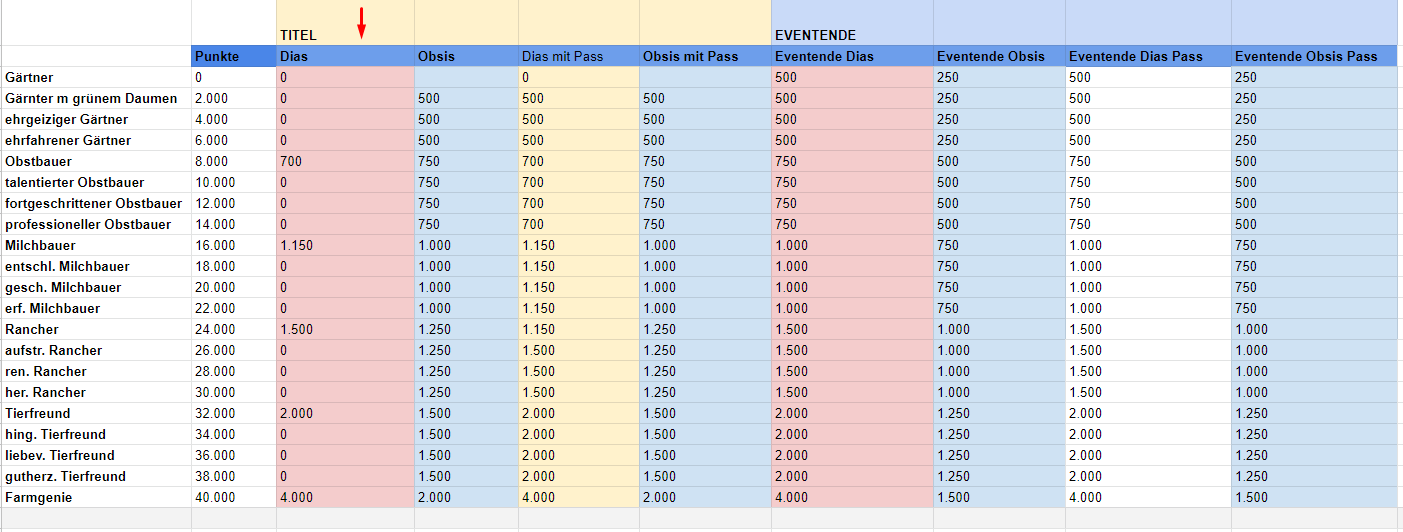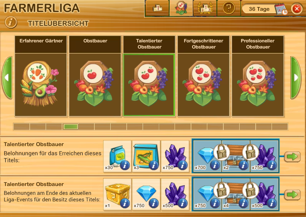 Frage: War es früher nicht so, dass es für die Erreichung des jeweils nächsten Titels 1x die Diamanten links gab und rechts die, die man durch den Erwerb des Saisonpasses bekommt? Nun gibt es anscheinend nur noch bei der jeweils ersten Stufe einer "Titelgattung" Diamanten. Also beim Obstbauer, dann erst wieder beim Milchbauer und dann wieder beim Rancher.