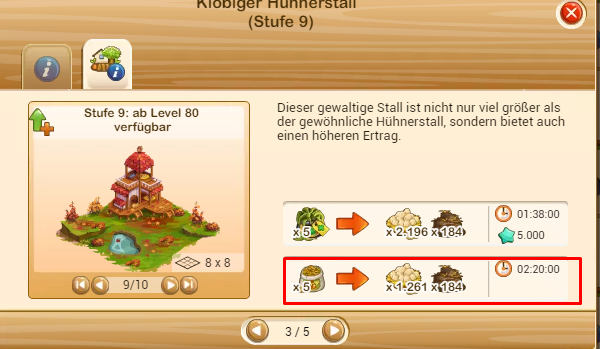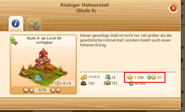Eine Angabe der Produktionsmenge in den Gemeinschaftsunterkünften ist m.E. weitaus sinnvoller. Könnte mir auch eine Mengenanzeige bei einem Mouse-over über das Eier-Symbol als Info vorstellen.
