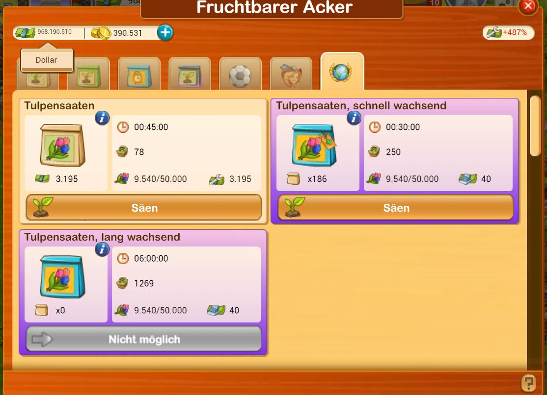Also verballern wir -angespornt durch einen künstlich erzeugten Konkurrenzkampf- BM um BM, bei Fleiß oder DF usw. unsere mühsam gesammelten (oder gar gekauften) SG-Produkte, Gold, Dollar, Spezial-Saaten etc..