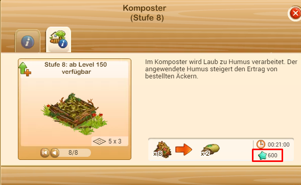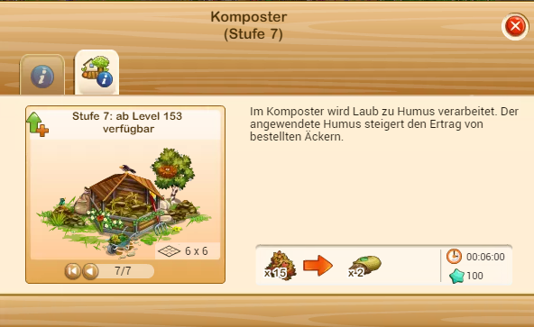 da man durch den Farmbund einen Fabrikbooster auf der HF erhält, erhöht sich die Menge direkt auf 2 Humus bzw. dann eben bei vollem Komposter auf 64