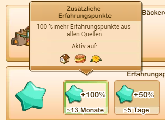 der booster bringt ebenfalls nur 100 prozent auf den grundertrag von 400, denn gesamt bekomme ich 920 xp für die rosen...