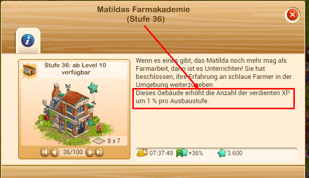 ich denke, bei den anderen produktionsgebäuden verhält es sich genauso, mathilde wirkt also auf die gesamten xp, die beim säen, düngen oder füttern, also vor der ernte, anfallen,