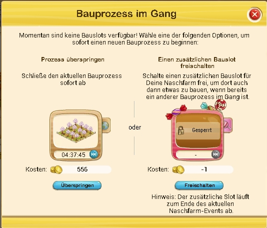 heute vormittag (so ca. 9-10 uhr) konnte ich noch ganz normal im naschfarmslot einen ausbau starten...
