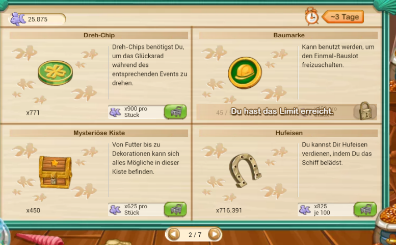 Habe diese Münzen gegen Baumünzen umgetauscht und kriege jetzt die Meldung ich hätte ein Maximum erreicht.