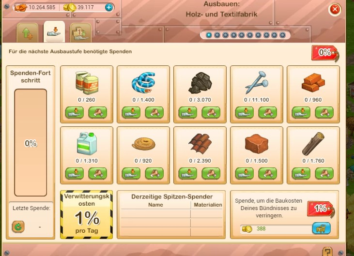 stelle gerade fest, dass direkt nach dem letzten Fabrikausbau, wenn ich als erste den nächsten Ausbau bespenden möchte, bereits 3 getätigte Bündnisspenden angezeigt werden und die Felder dafür auch grau hinterlegt sind.