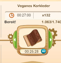 Farbstoff läuft seit 12 sec, Kapokfaser 22 sec, Korkleder 32 sec