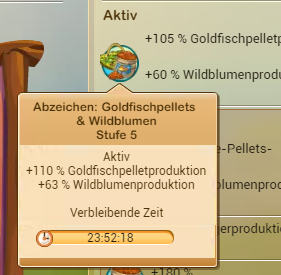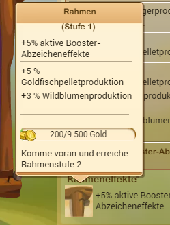 man kaufte gegen Gold den im Hintergrund angezeigten Booster von 105% Pellets und 60% Wildblumen