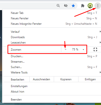 bei fast allen Browsern muss man dafür rechts oben in der Ecke auf die 3 Punkte klicken und kann dann mit Klick auf das Minuszeichen um die Ansicht niedriger zu stellen...dann solltest du eigentlich alles sehen können