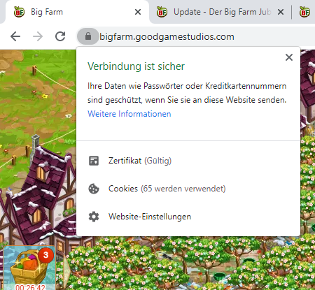 seit etwa ner std habe ich keine sichere verbindung über opera und chrome. die seite kann nicht geladen werden. vorher war ich bei tessa, danach konnte ich nicht mehr alles ernten, die seite fror ein. f5 ging nicht mehr. ein neustart des brwosers brachte dann die unsichere verbindung.