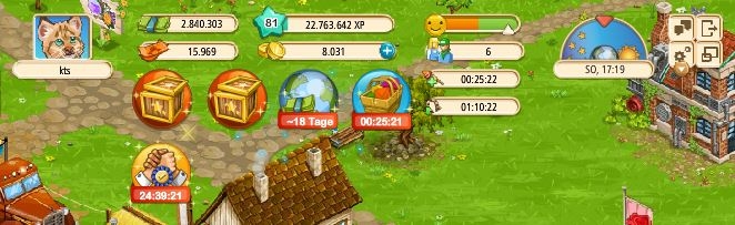 Dollar, Farmdollar, Gold, Levelanzeige alles in einer Zeile ganz oben am Bildschirmrand.