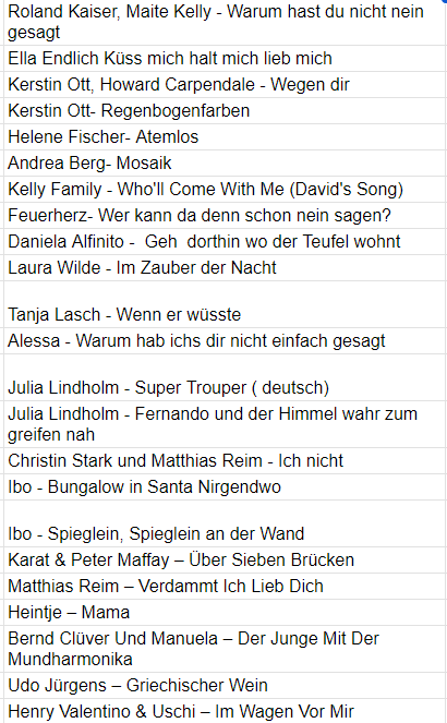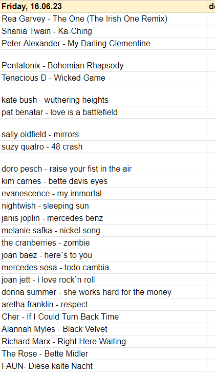 Playlist für die Music-Night am Freitag, den 16.06.23