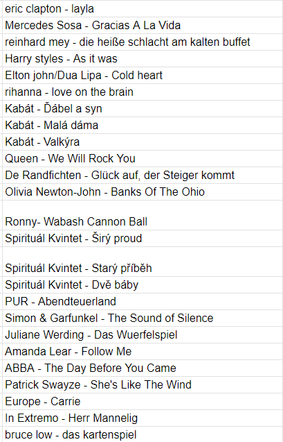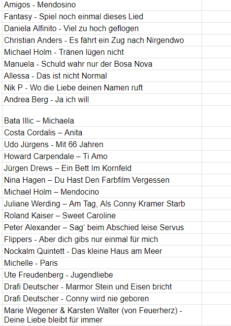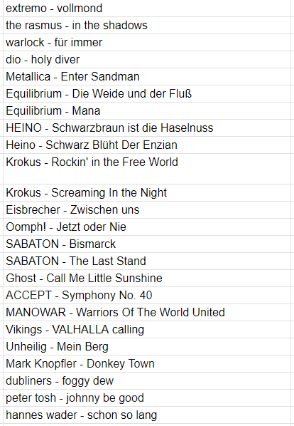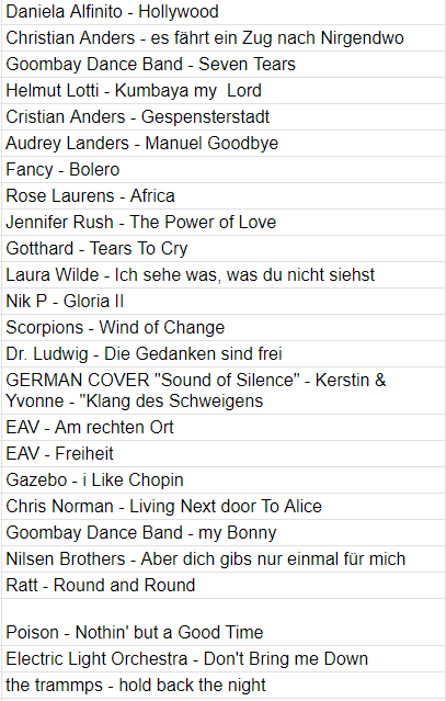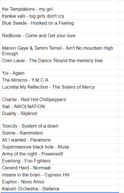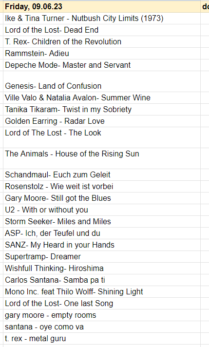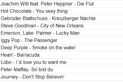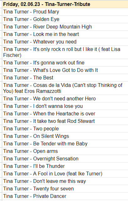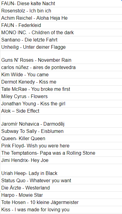 Playlist für die Music-Night am Freitag, den 09.06.23