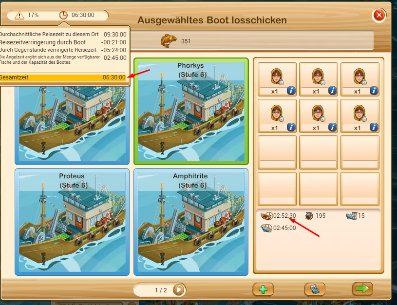 Habe wohl die Namen durcheinander gebracht. Als Brigitte meinte ich die Frau, die man bei dem kleineren Boot braucht. Aber Danke für die vielen Erklärungen. Habe nun alle meine Boot mit dem falschen Personal bestück mal sehen was passiert.