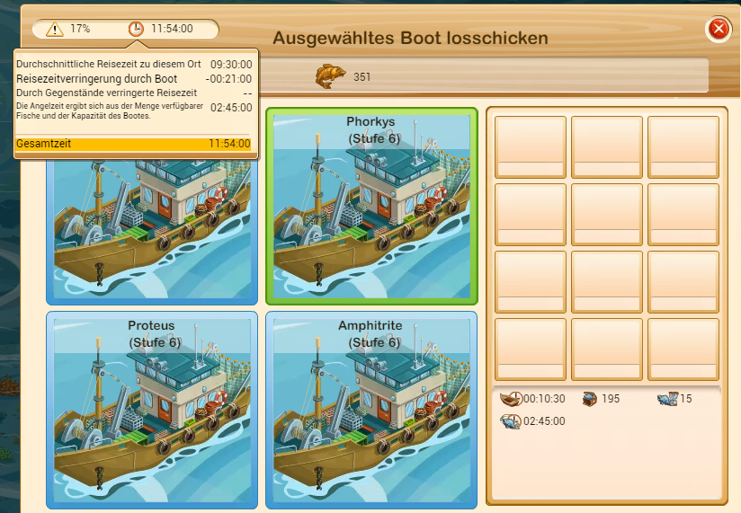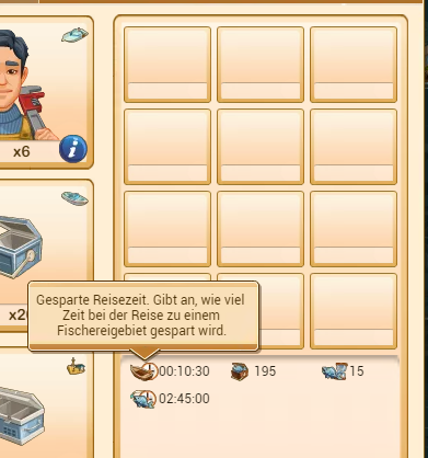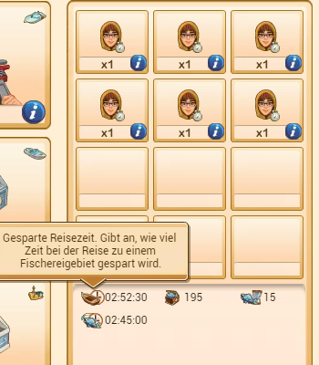ein Trawler hat eine bestimmte Fahrzeit, die gesparte Zeit steht unten dran an dem Icon:
