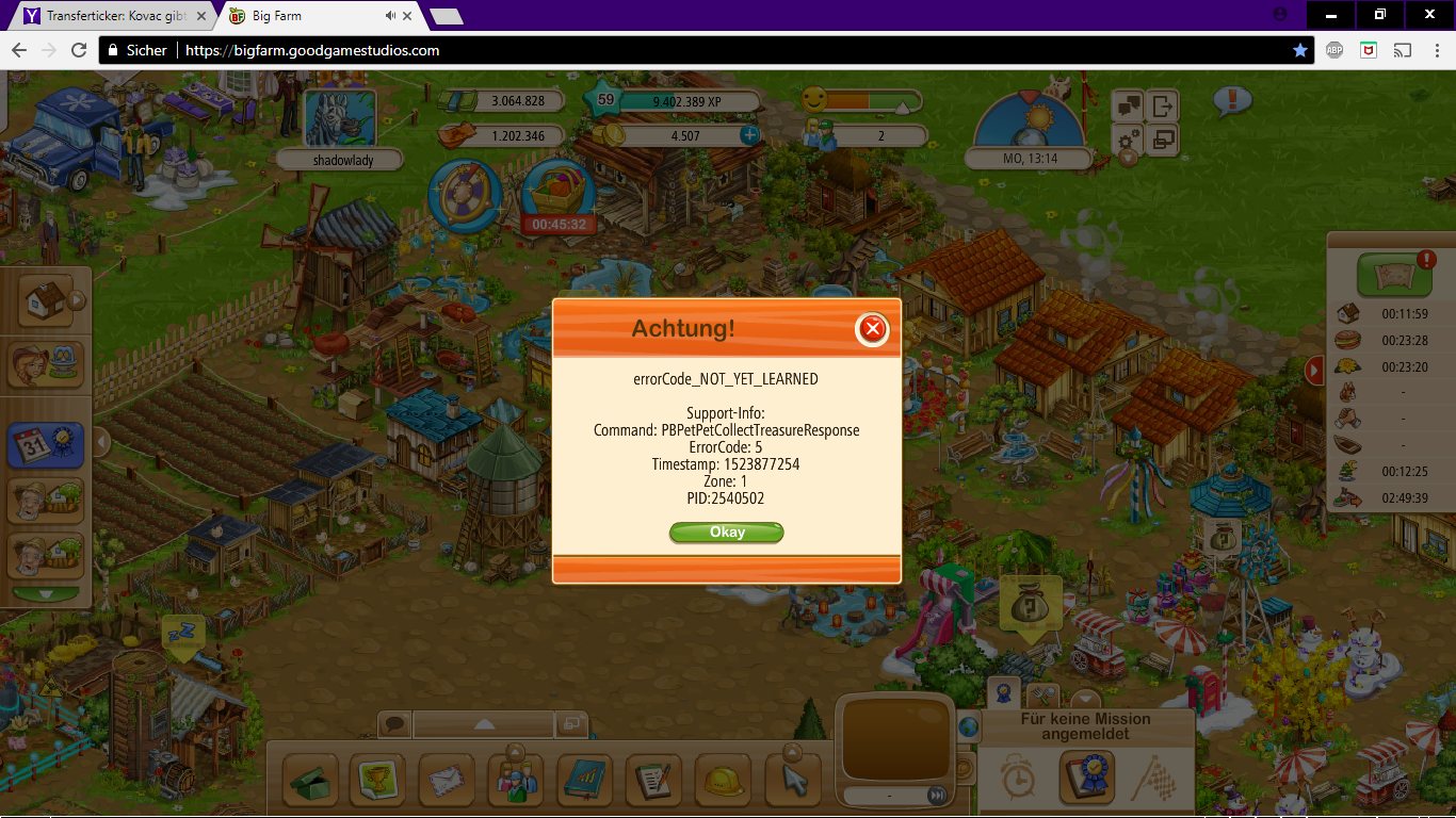 Ich bekomme jedes mal beim Füttern meines Hundes auf der Haupt Farm diese hier angezeigt.