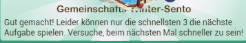 in die "Laternenaufgabe" kommen die ersten 3..aber ich nicht, obwohl ich ja angeblich auf Platz 3 die Aufgabe davor abgeschlossen habe und die schnellsten 3 die Aufgabe machen dürfen