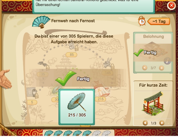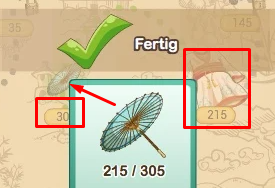 die Aufgabe mit dem Sonnenschirm lässt 305 Spieler zu: