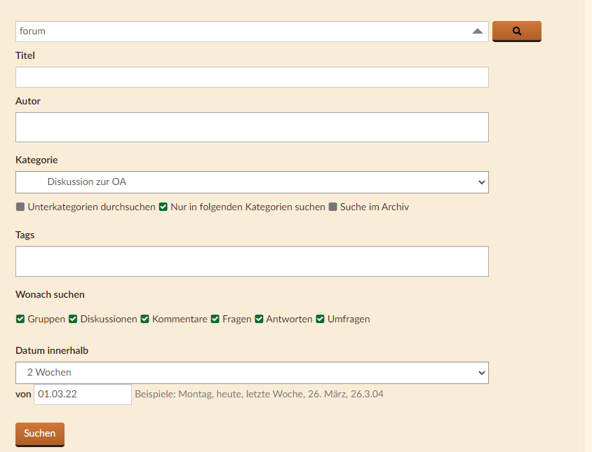 ich hab nur in Diskussionen zur OA und ab 1.3. suchen lassen...