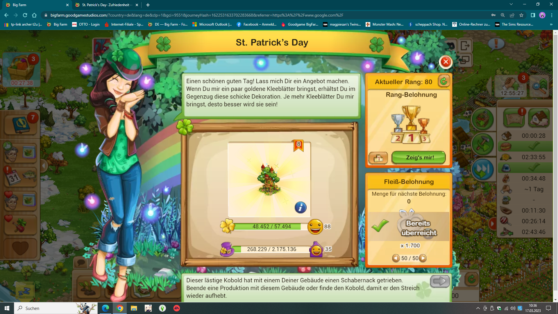 Okay- danke für die Info- die Anzahl dann der Kleeblätter scheint dann am Level der Farm zu hängen- aber dennoch schade das es nicht weiter geht- ich würde eine höhere Zufriedenheit der Deko dennoch schätzen- denn es gibt ja höher Wertige- könnte da dann doch gehen- aber nur meine Meinung