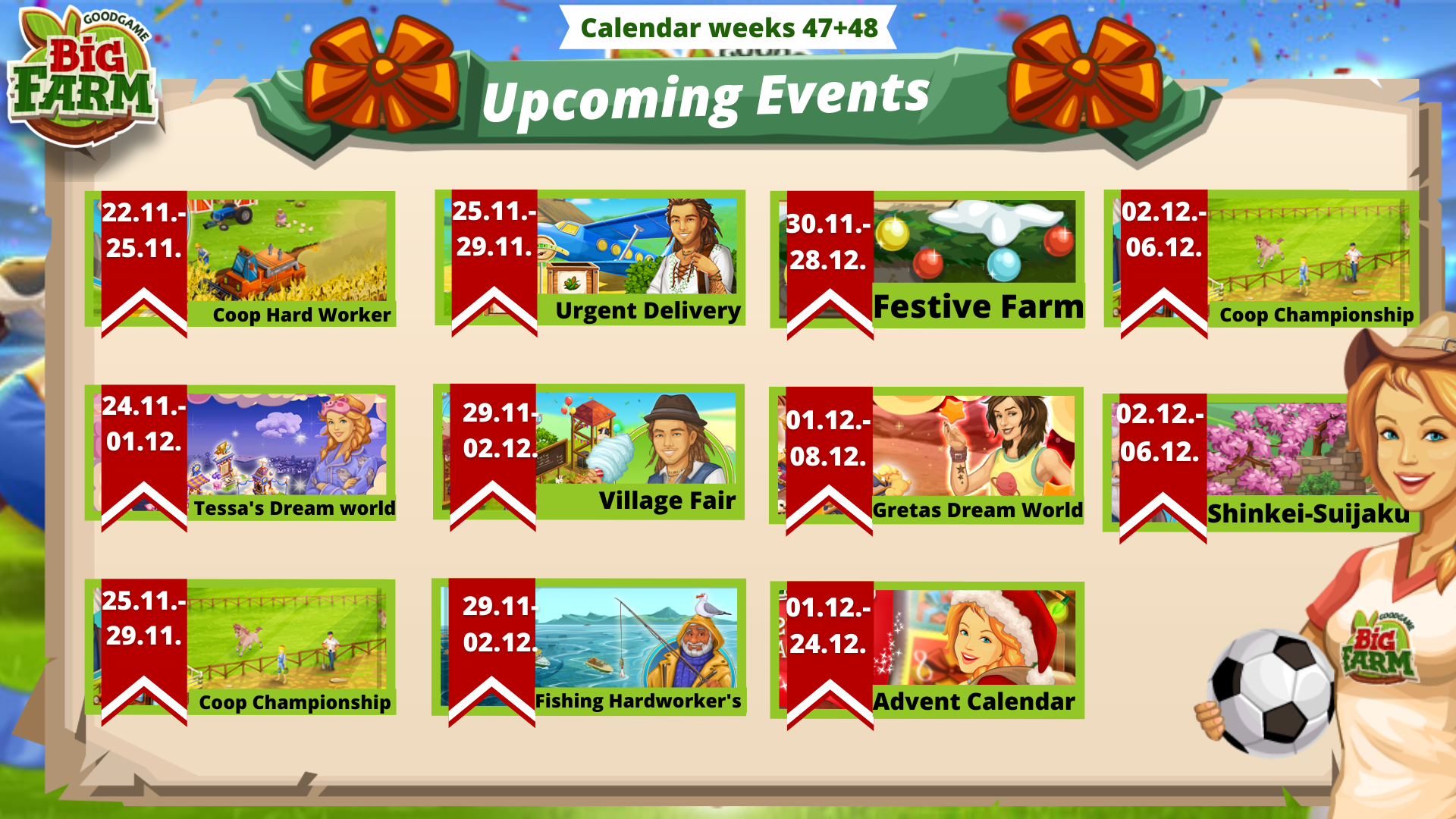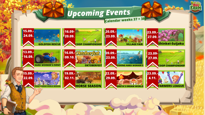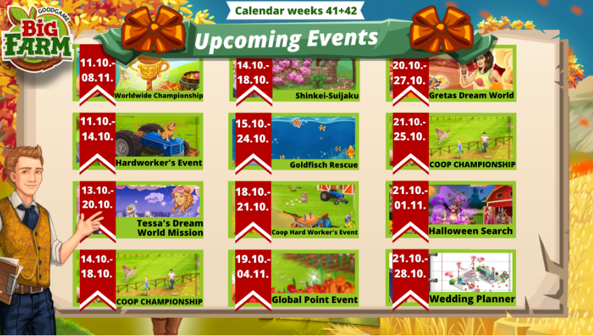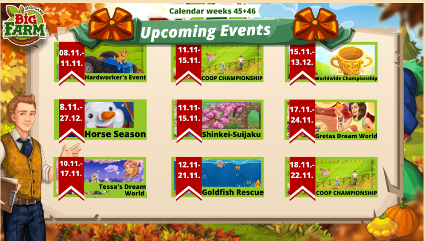 Γειά σας, εδώ και μια βδομάδα (ίσως και λίγο παραπάνω) έχω φτιάξει φάρμα και έχω φτάσει 19 level. Τις περισσότερες εκδηλώσεις τις ήξερα ήδη απο προηγούμενα χρόνια στο big farm. Αλλά δεν μπορώ να καταλάβω κάτι. Για να εμφανιστούν αυτές οι εκδηλώσεις στην φάρμα μου θα πρέπει να έχω κάποιο συγκεκριμένο χρονικό διάστημα στο παιχνίδι ή να είμαι πάνω από κάποιο level? Επειδή δεν μου έχει εμφανιστεί καμία εκδήλωση από αυτές που αναφέρονται σε αυτήν την δημοσίευση.