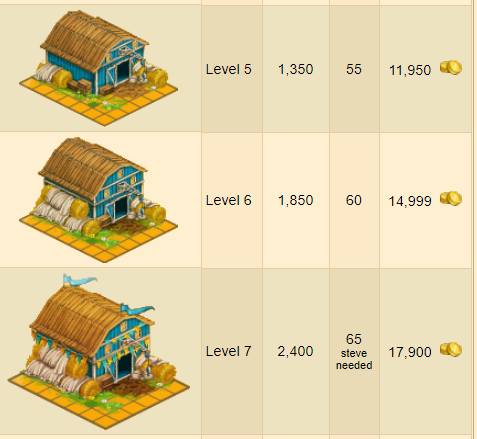 μπορεί κάποιος να μου πει πόσο χρυσό χρειαζόσαστε για την αναβαθμισει της μεγάλης(μπλε) αποθήκης?ανά επίπεδο