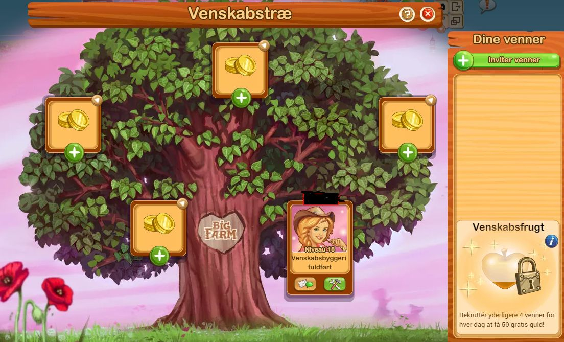 There are not only rewards. If you have 5 friends on the tree, you come got 50 gold by every 12 hours. Total 6 000 gold you come got from this way. You can get 20 harvests more if you and your friend do the friendship-building completed!