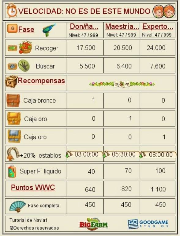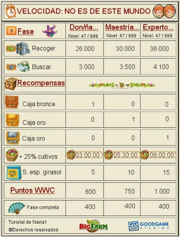 Miguel seguramente tu estas haciendo el nivel 7 que han puesto ahora nuevo y pide el doble de las cantidades del nivel 6.Miguel54 (ES1) dijo:Segun veo aquí en este evento de No es de este mundo, en la prueba de recogida de fotos pide 2.550 en maestria granjera, sin embargo a mi me ha pedido, y lo estoy haciendo en este momento, 5.100, alguien sabe porqué
