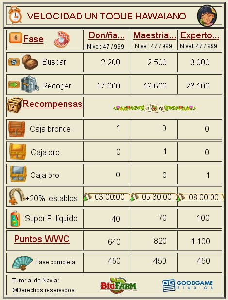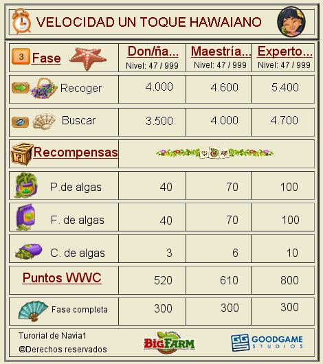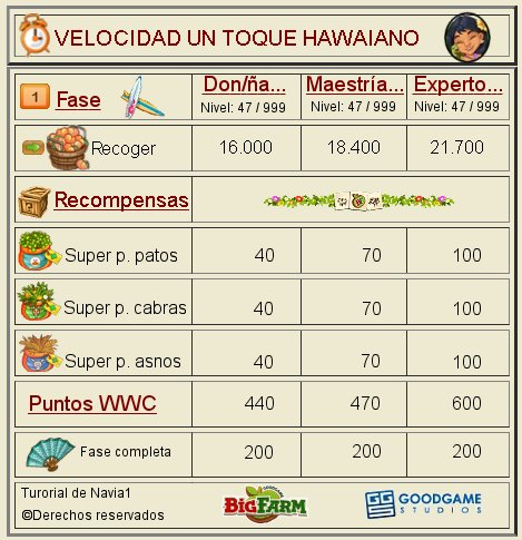 Por gentileza de un [email protected], os dejo la guía del Evento: Un toque hawaiano, en su nueva versión de desafío de velocidad.