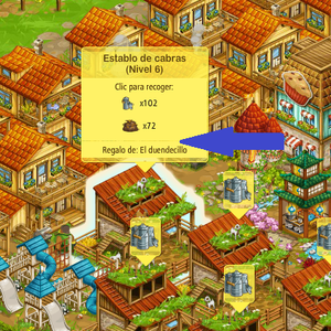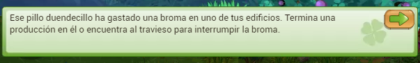 Para arreglar ese efecto, haz clic en el edificio afectado y busca un duendecillo en tus granjas. Este es su aspecto:
