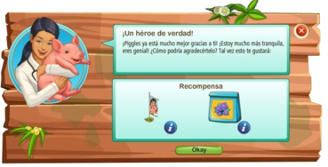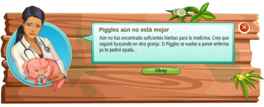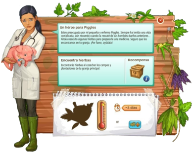 Ha llegado a nuestras granjas, la veterinaria Vicky Ventura. Uno de sus cerditos se ha puesto enfermo y ella ha venido para pedirnos que la ayudemos a curarlo. Para conseguirlo, Vicky necesita hierbas y nos pide que la ayudemos a encontrarlas. Cuando veas la ambulancia de Vicky en tus granjas, haz clic en su imagen:
