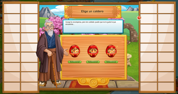 Cuando encuentres el tanuqui, clícalo y te dejará elegir uno de sus tres muñecos daruma: