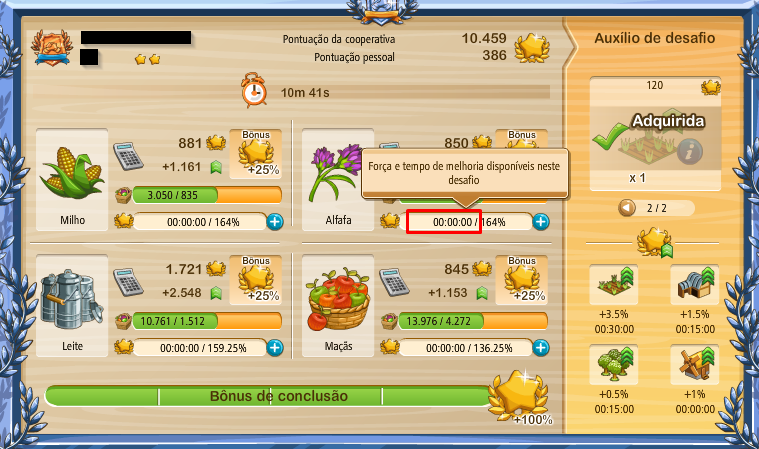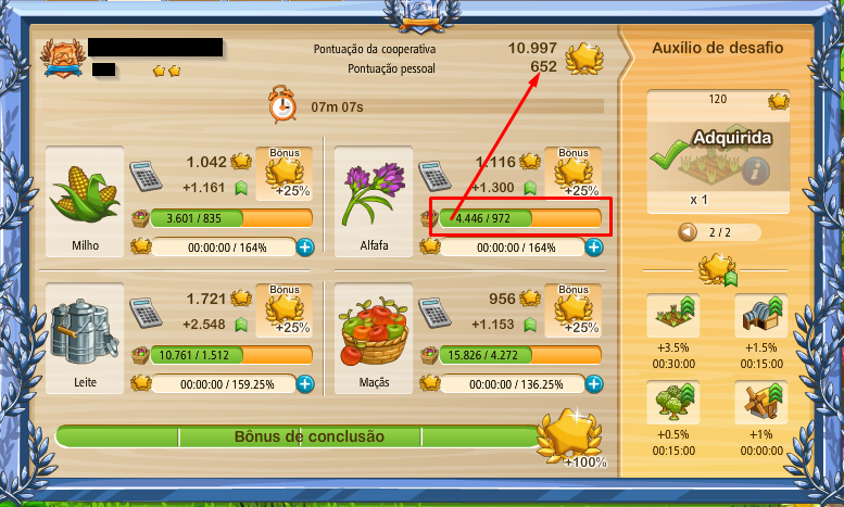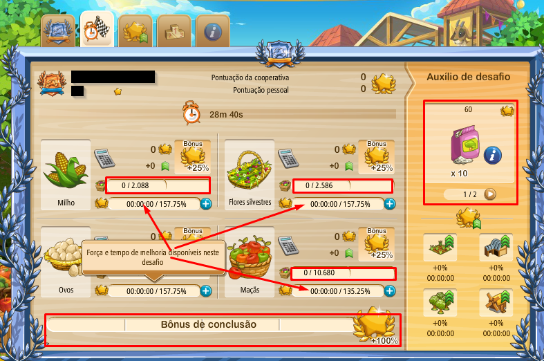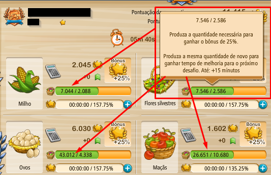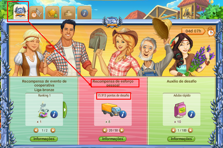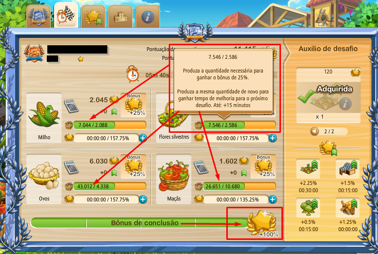 Pero, una vez que usted inicie un desafío por segunda vez usted no podrá alcanzar estas recompensas de nuevo y tendrá que confiar en sus propias habilidades agrícolas o impulsores para aumentar los puntos.