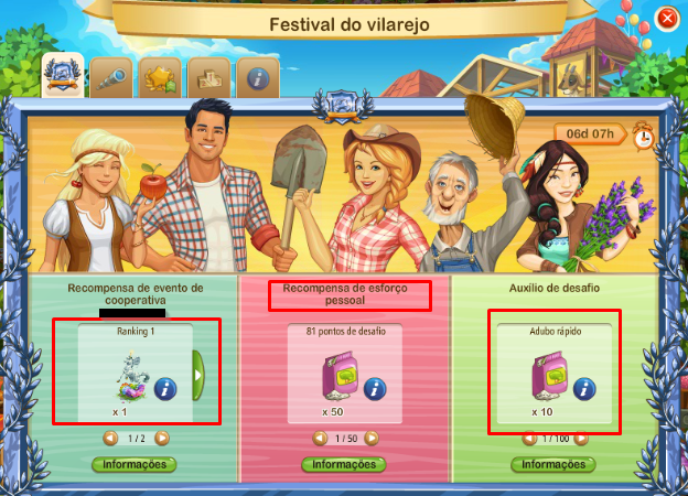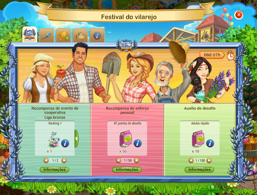 Los jugadores tienen que cosechar 4 productos agrícolas diferentes provenientes de la 1ª, 2ª y 3ª granjas. Sólo uno puede saber el tipo de productos, pero la cual y el objetivo es conseguir el mayor número de puntos de desafío individual y colectiva como sea posible hasta el final del evento.