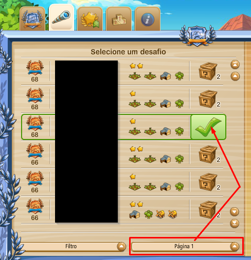 El filtrado se puede hacer por página: el 1er tiene desafíos más fáciles y va creciendo hasta la página 5 con los desafíos más difíciles pero más atractivos a nivel de premios.