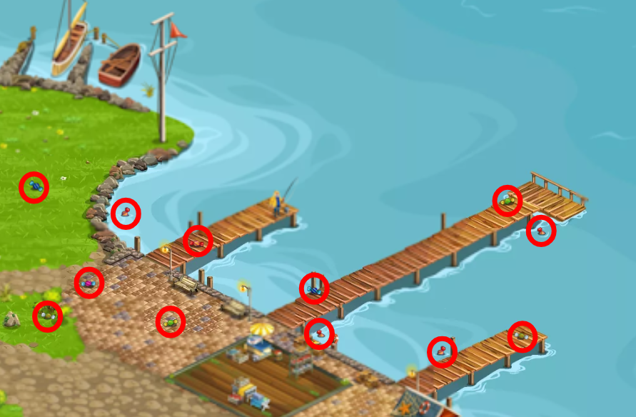 Por 25 puntos: 1 caja misteriosa de bronce Por 50 puntos: $ 50,000 Por 75 puntos: 1 caña de junco Por 105 puntos: 1 semilla de rosas Por 150 puntos: 20 pienso de algas Por 175 puntos: 2 fichas para la ruleta Por 220 puntos: 10 cebos sencillo para peces limón Por 245 puntos: 2 compost de algas Por 275 puntos: 5 semillas de girasol Por 300 puntos: 30 fertilizantes de algas Por 315 puntos: 1 decoración