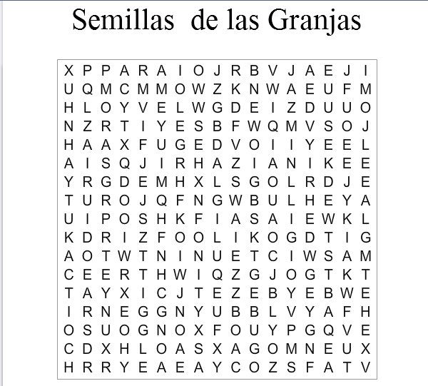 Hola [email protected] la 3º sopa de letras es de buscar semillas de las Granjas