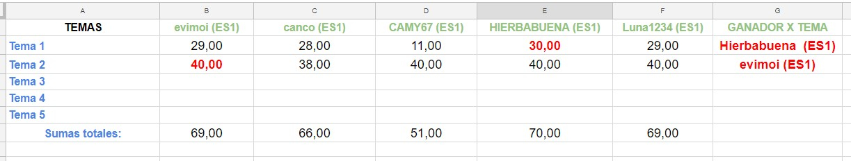 Respuestas 47-48-49-50-51-62, son nulas, está el genérico en la respuesta 12: Horca - 6 puntos